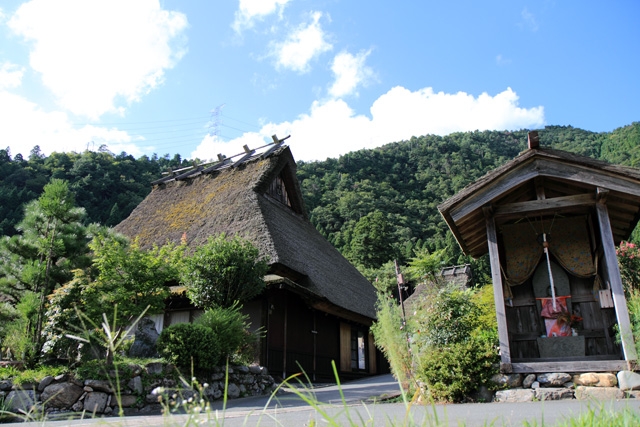 ・かやぶき屋根にお地蔵さん