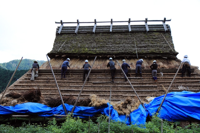 ・修復作業中のかやぶき屋根